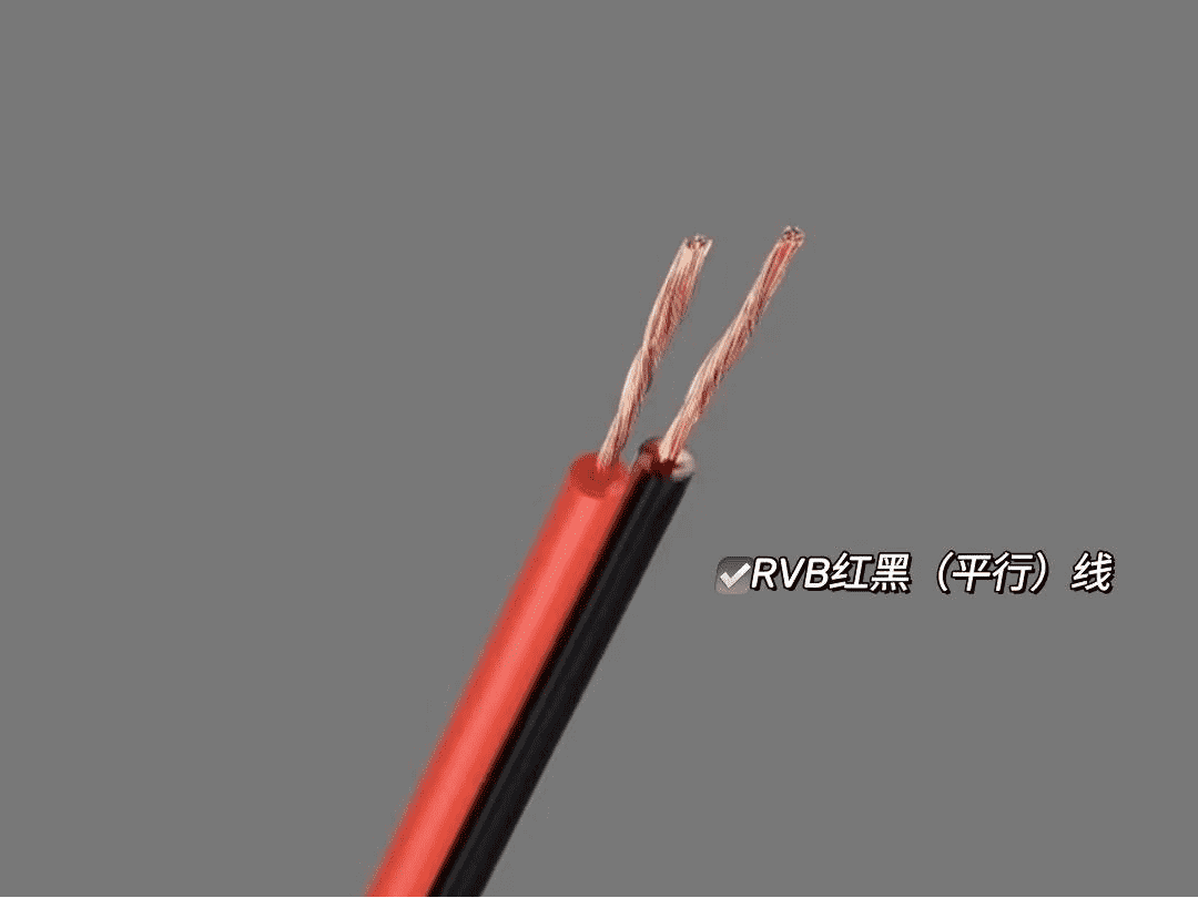 RVB的全称为:铜芯聚氯乙烯绝缘扁形无护套软线,俗称“红黑(平行)线”